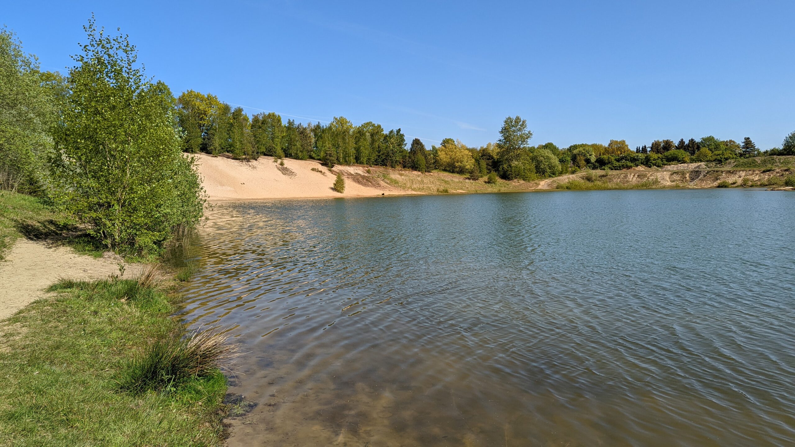 Ein See mit Sandstrand und klarem Wasser, ein lichter Buchenwald und weite Wiesen. Dummysportler, was willste mehr.